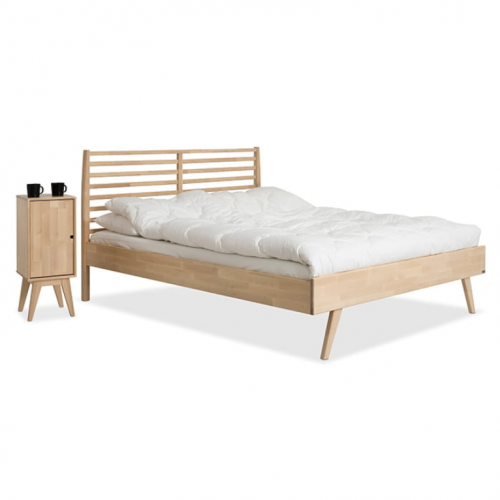 Sängyn runko on valmistettu massiivikoivusta, joka tuo rakenteeseen lujuutta ja pitkäikäisyyttä. Kauniisti muotoiltu pääty ja tyylikkäät vinot jalat keventävät kokonaisilmettä ja tekevät sängystä elegantin sisustuselementin.