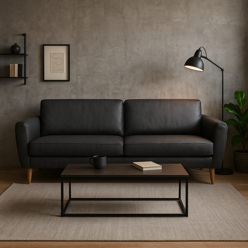 Hjort Knudsenin Skandia 3-istuttava sohva edustaa modernia tanskalaista muotoilua, jossa yhdistyvät tyylikkyys ja käytännöllisyys. Sohvan napakka istuinmukavuus ja ryhdikkäät selkätyynyt tarjoavat tukevan ja miellyttävän istumakokemuksen. Kiinteät istuintyynyt ja irrotettavat selkätyynyt säilyttävät hyvin muotonsa, mikä tekee sohvasta pitkäikäisen valinnan jokapäiväiseen käyttöön. Verhoiluna on musta Madras-nahka, joka on aitoa läpivärjättyä nahkaa. Kaikki kulutuspinnat ovat nahkaa, muut osat keinonahkaa. Nahkapinta on helppo pitää puhtaana, sillä se kestää hyvin kostealla liinalla pyyhkimistä. Selkeälinjainen muotoilu ja laadukkaat materiaalit tekevät Skandiasta erinomaisen valinnan moderniin kotiin.