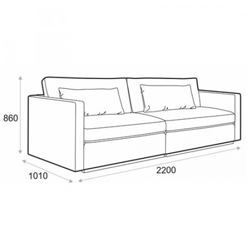 Leveys 220 cm, syvyys 101 cm, korkeus 86 cm