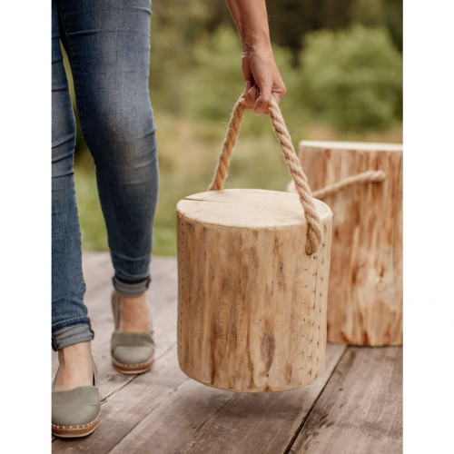 Jakkaraa on saatavilla eri korkuisina (30 cm tai 45 cm) ja halkaisijaltaan 25-35 cm, mikä antaa mahdollisuuden valita koon tilan ja käyttötarkoituksen mukaan. Yhdistelemällä eri kokoisia Pölkky jakkaroita saat kivan kokonaisuuden. Juuttinaru ei ainoastaan lisää jakkaran kätevyyttä kantamisen ja siirtämisen suhteen, vaan toimii myös kauniina yksityiskohtana, joka korostaa tuotteen luonnonläheistä luonnetta.