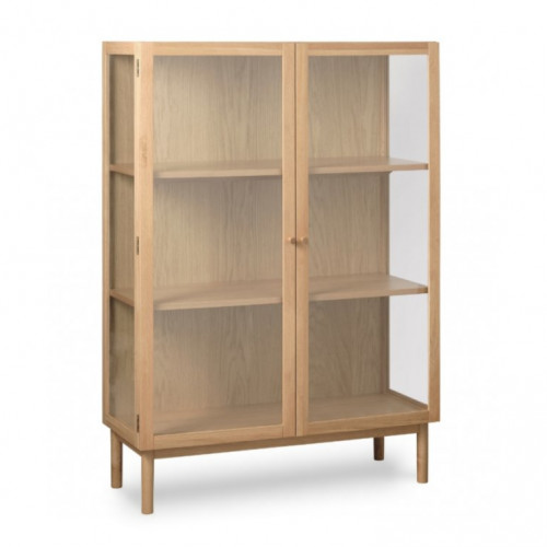 Elba matala vitriini on siro ja tyylikäs lisäys sisustukseesi. Elba vitriini on valmistettu laadukkaasta aidosta tammiviilusta, mikä takaa kestävyyden ja luonnollisen kauneuden. Vitriinin lasiovet, joissa on puukehykset, antavat sille hienostuneen ja modernin ilmeen. Lasit ovat karkaistua lasia, mikä tekee vitriinistä kestävän ja turvallisen valinnan. Vitriinin sivut ovat myöskin lasia, mikä lisää sen avoimuutta ja valoisuutta. Vitriinissä on kaksi säädettävää puuhyllyä jotka mahdollistavat monipuolisen tavaroiden säilyttämisen. Korkea puujalka antaa vitriinille keveyttä ja ilmavuutta, kun taas puuvetimet viimeistelevät sen ulkonäön. Vitriini on lakattu joten sen puhtaanapito on helppoa ja huoletonta. Elba matala vitriini yhdistää käytännöllisyyden ja tyylikkyyden, ja se on ihanteellinen valinta esineidesi esillepanoon ja säilyttämiseen.
