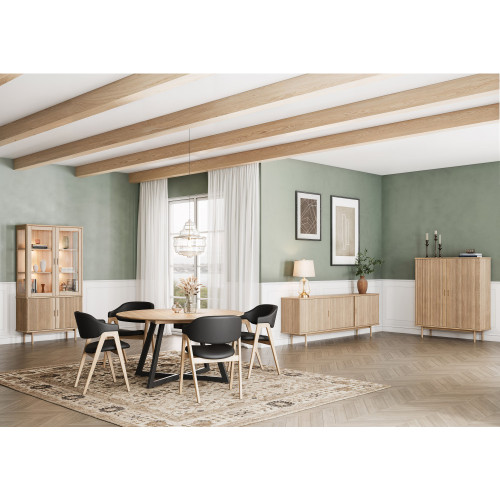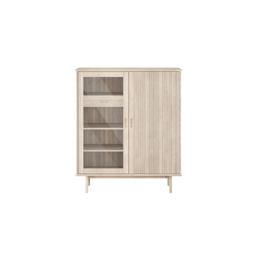 CASØ 330 -vitriinikaappi tuo retrohenkisen muotoilun tähän päivään. Säleovista inspiroitunut ilme yhdistyy pyöristettyihin reunoihin, jotka tekevät kokonaisuudesta pehmeän ja modernin. Uritetut oven etuosat tuovat kauniin kontrastin ja viimeistellyn yksityiskohtaisuuden, joka erottuu edukseen kodin sisustuksessa.