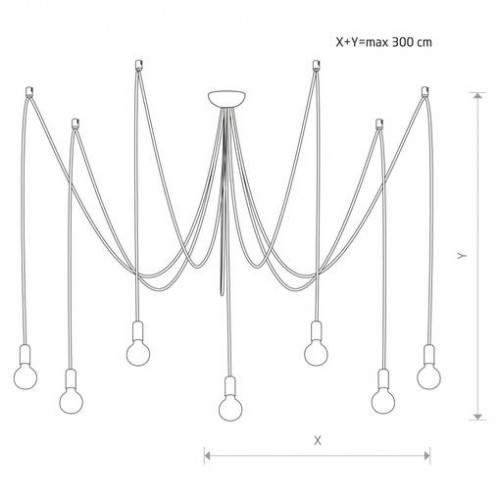 Moderni ja persoonallinen Spider 7 -kattovalaisin yhdistää oivaltavasti pelkistetyn muotoilun ja rouhean teollisen tyylin. Seitsemän pitkää, mustaa kangaspintaista johtoa muodostavat näyttävän ja ilmavan kokonaisuuden, jonka muotoa ja ilmettä voi muunnella vapaasti tilan mukaan. Pitkien johtojen ansiosta voit luoda joko runsaan, veistoksellisen valaisimen korkeaan tilaan tai levittää valon pehmeästi laajalle alueelle matalammassa huoneessa.