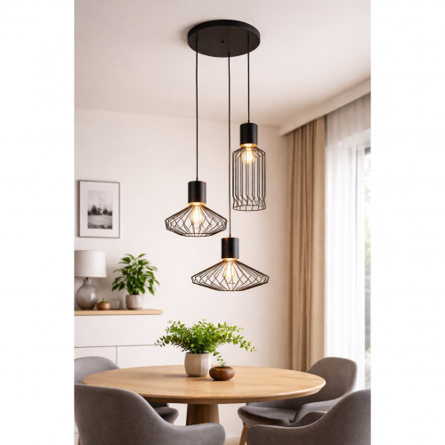 Mustaa yleisväriä täydentävät kullanväriset somisteet, jotka tuovat valaisimeen lämpöä ja viimeisteltyä eleganssia. Pico III sopii erinomaisesti ruokapöydän, keittiösaarekkeen, olohuoneen tai korkeiden tilojen yläpuolelle, missä sen muoto ja valon leikki pääsevät oikeuksiinsa.