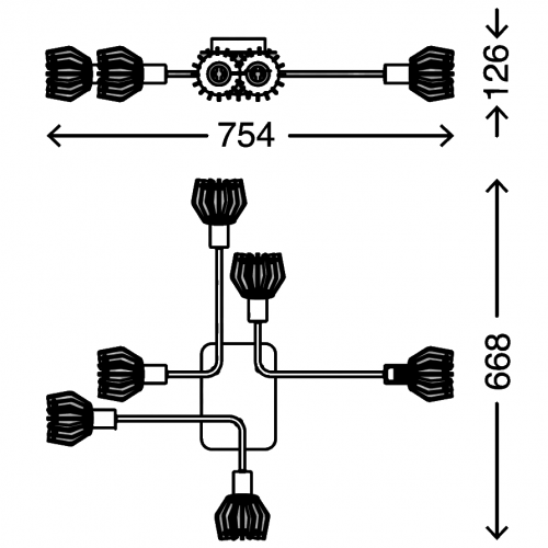 Valonlähde: 6 x E14 / max 5,5 W (ei sisälly toimitukseen)