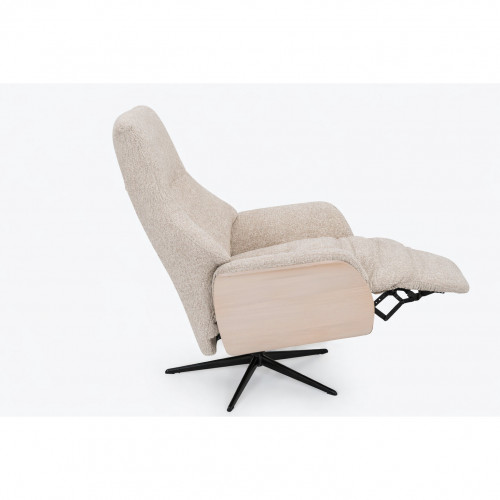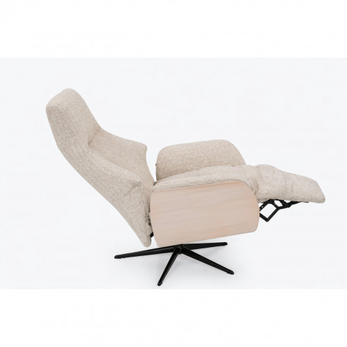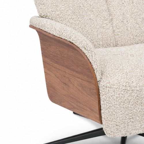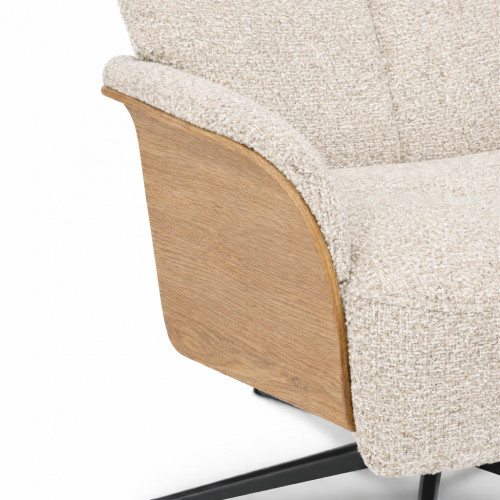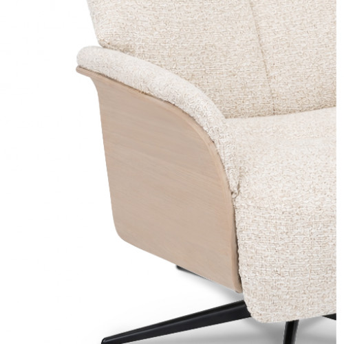Käsinojien ulkoreunat on viimeistelty aidolla puuosalla, joka tuo tuoliin lämpöä ja arvokasta ilmettä. Puuosaa on saatavana kolmessa sävyssä: öljytty tammi, valkaistu tammi ja aito pähkinä. Lepotuoli on saatavilla myös akkukäyttöisenä versiona, jolloin lattialla ei ole häiritseviä johtoja.