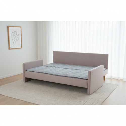Tuomi-vuodesohva on käytännöllinen ja tyylikäs ratkaisu arkeen, jossa tarvitaan joustavuutta ja helppokäyttöisyyttä. Sohva muuntuu hetkessä kahdeksi erilliseksi vuoteeksi – yläosan kehikko nostetaan yksinkertaisesti alakehikon viereen. Vuoteet voidaan sijoittaa vierekkäin tai täysin erilleen, mikä tekee Tuomesta erinomaisen valinnan vieraskäyttöön, lapsiperheille tai monikäyttöisiin tiloihin.