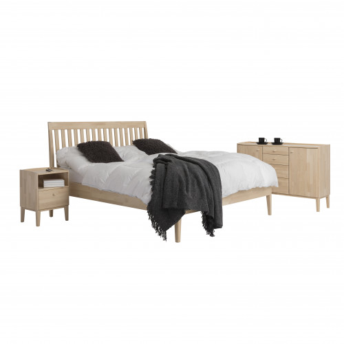 Sängyn runko on valmistettu pohjoisesta massiivikoivusta, joka takaa kestävyyden, tukevuuden ja pitkän käyttöiän. Huolellinen viimeistely ja tarkkaan suunnitellut yksityiskohdat kertovat aidosta kotimaisesta käsityöstä. Runko on saatavilla kahdessa eri sävyssä valkoinen tai koivu.