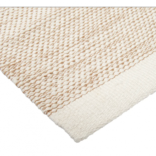 Matosta on saatavana kaksi neutraalia ja ajatonta sävyä. Luonnonvalkoinen vaihtoehto on olohuoneen klassikko, joka sopii sekä moderniin että perinteiseen sisustukseen. Beigen sävyinen matto puolestaan tuo tilaan lämpöä ja pehmeyttä. Molemmissa sävyissä valkoisen ja beigen yhdistelmä luo elävyyttä ja korostaa kauniisti maton pintarakennetta. Maton päissä olevat leveät yksiväriset raidat viimeistelevät ilmeen ja tuovat ryhtiä kokonaisuuteen.