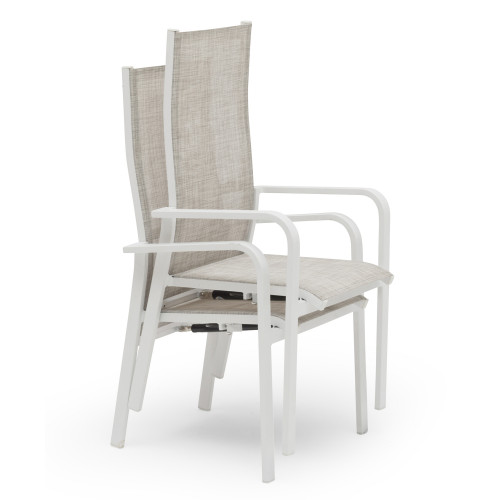 Korkea selkänoja ja portaattomasti säädettävä mekanismi takaavat erinomaisen istuinmukavuuden. Voit säätää tuolin juuri haluamaasi asentoon, joten se sopii täydellisesti niin ruokailuun kuin rentoon oleskeluun ja auringonottoon.