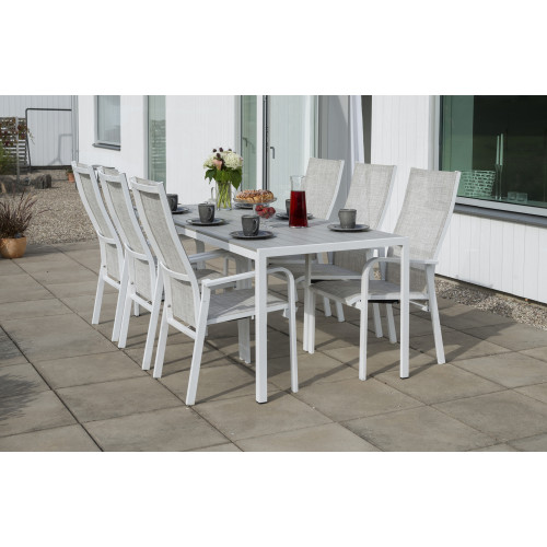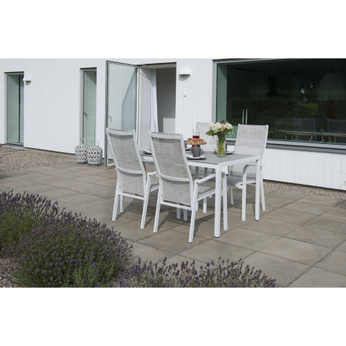 Alumiini- ja textilene-kalusteet ovat helppohoitoisia ja suunniteltu ulkokäyttöön.