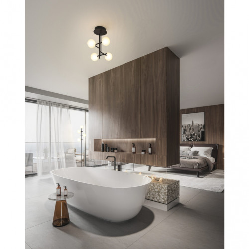 Moderni ja ajattoman tyylikäs E.lite Cellar -kattovalaisin valaisee tilan pehmeästi ja häikäisemättä. Valaisimen on suunnitellut Santiago Sevillano espanjalaiselle Mantralle, ja se edustaa minimalistista designia, jossa musta metallirunko ja valkoiset opaalilasikuvut muodostavat harmonisen kokonaisuuden.